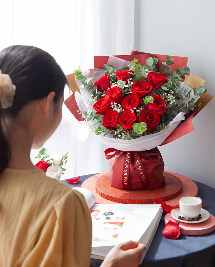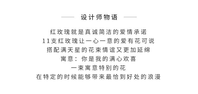 [11枝热销 一心一意的爱] 卡罗拉红玫瑰11枝,满天星、尤加利