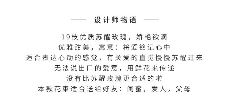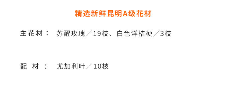 苏醒玫瑰19枝、白色洋桔梗3枝、尤加利10枝