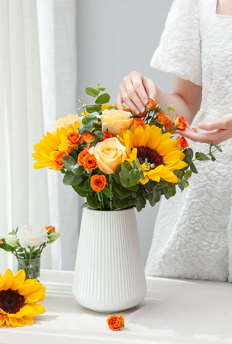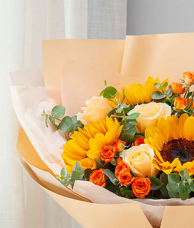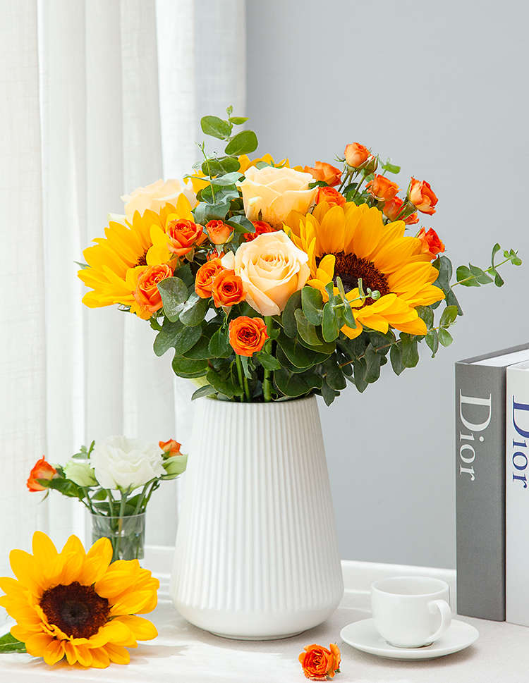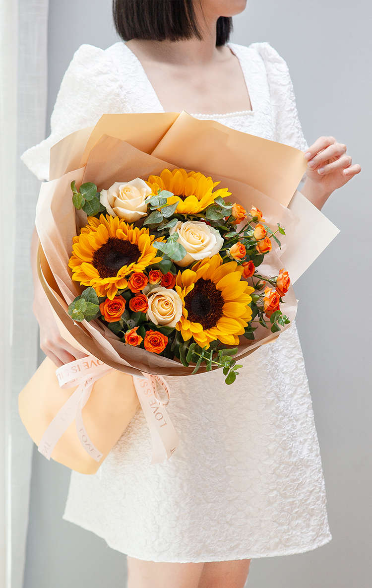 [本月热销款] 向日葵+香槟玫瑰+多头玫瑰