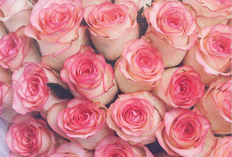 提示:白纱罩在花束上