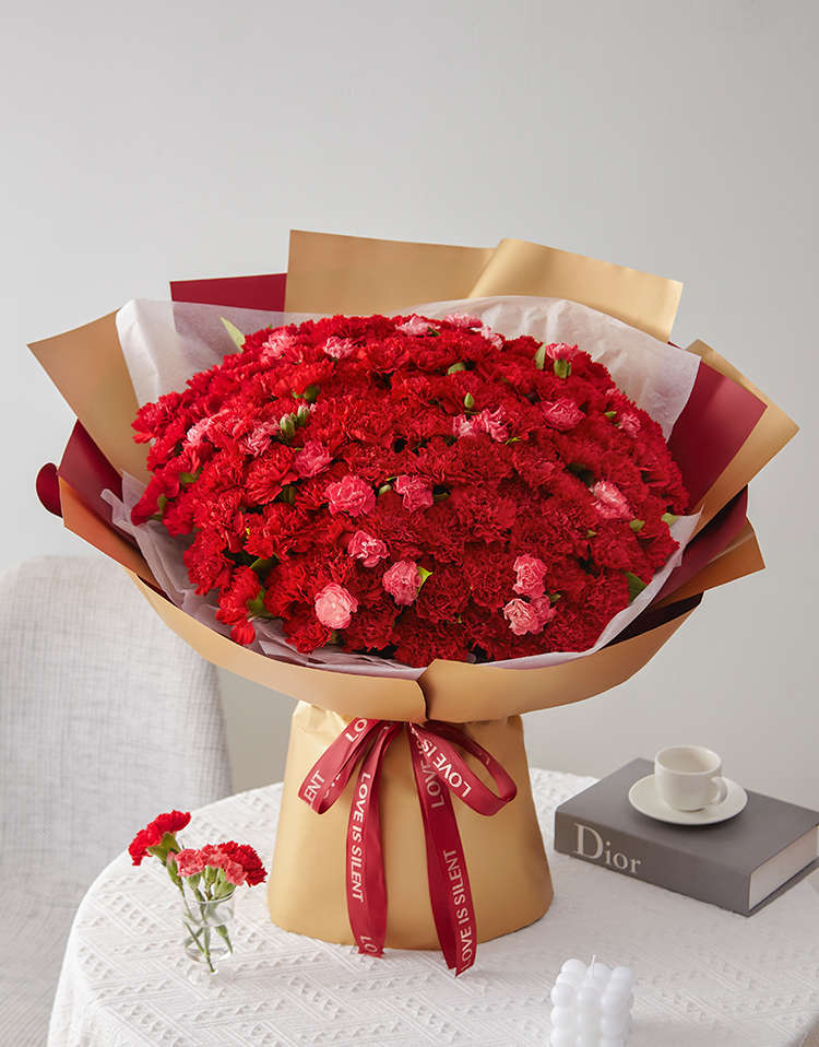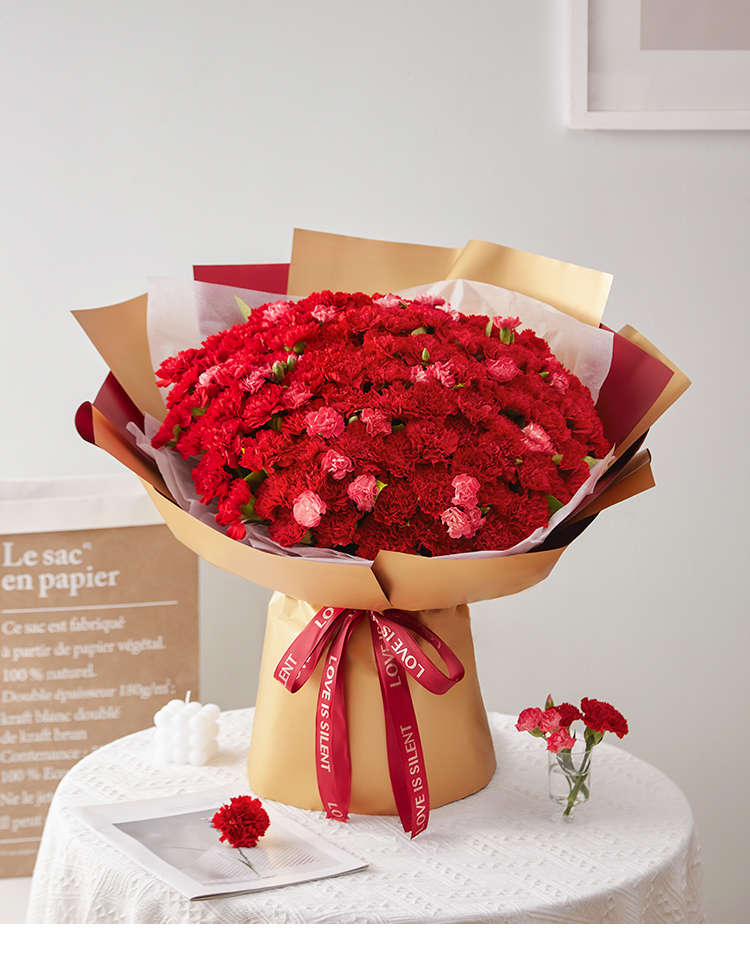 [99枝康乃馨经典设计] 红色康乃馨99枝、红多头康乃馨10枝