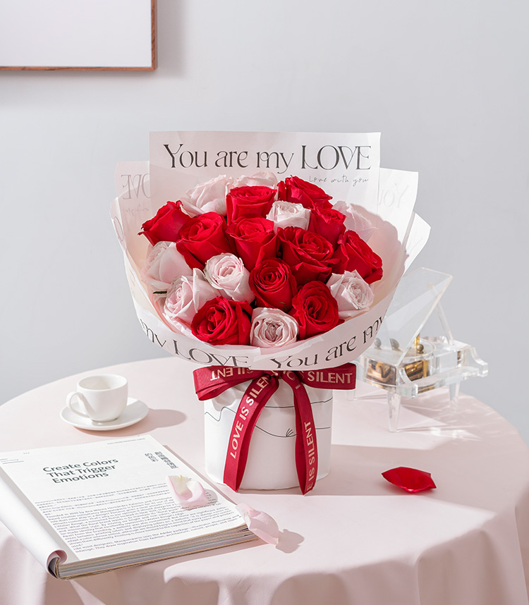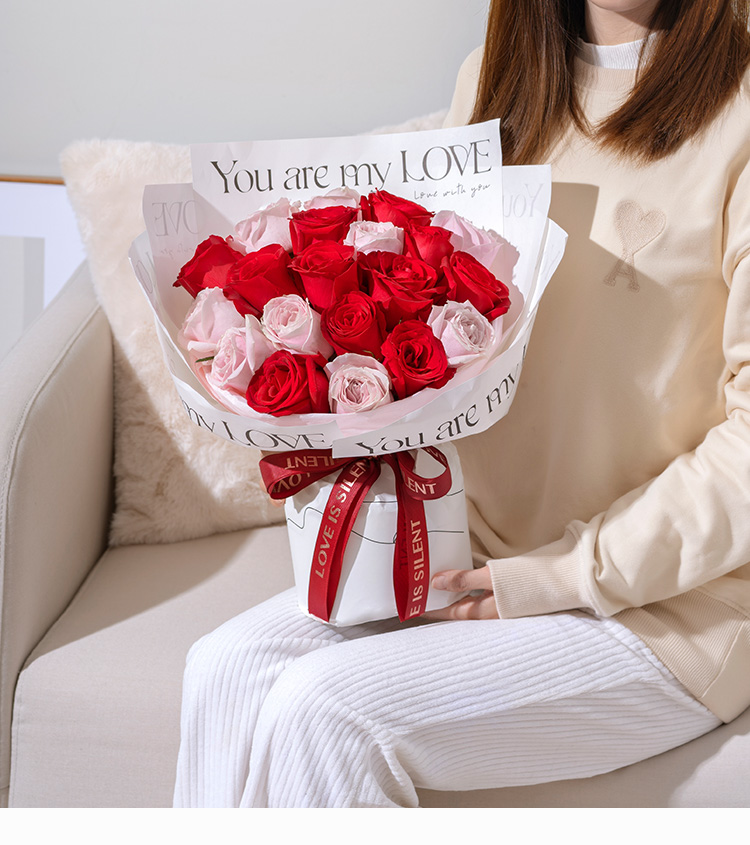 [2022定制新款] 卡罗拉红玫瑰11枝,粉红雪山玫瑰9枝