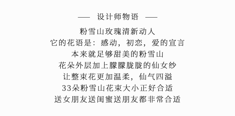 首页 > 鲜花 > 粉色邂逅/33枝仙女纱款