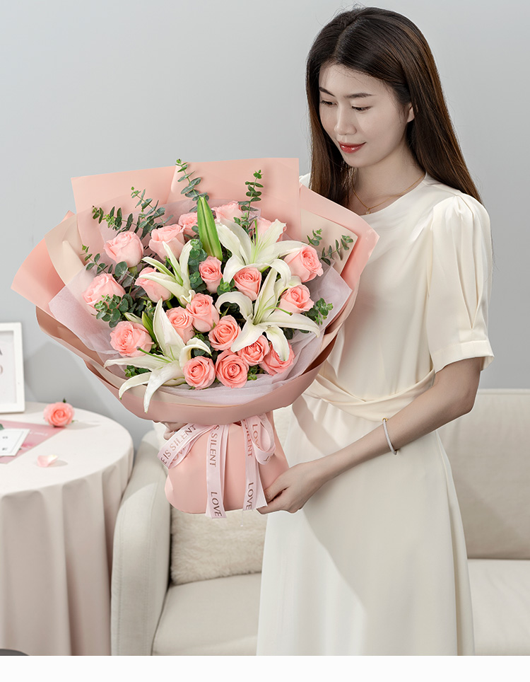 首页 > 鲜花 > 百事合意/粉玫瑰香水百合plus