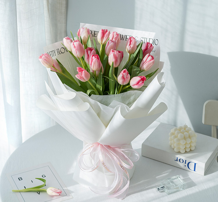 [高雅、富贵、祝福] 粉色郁金香19枝
