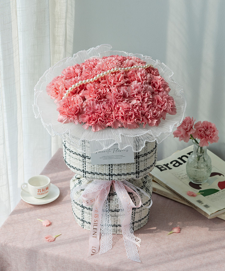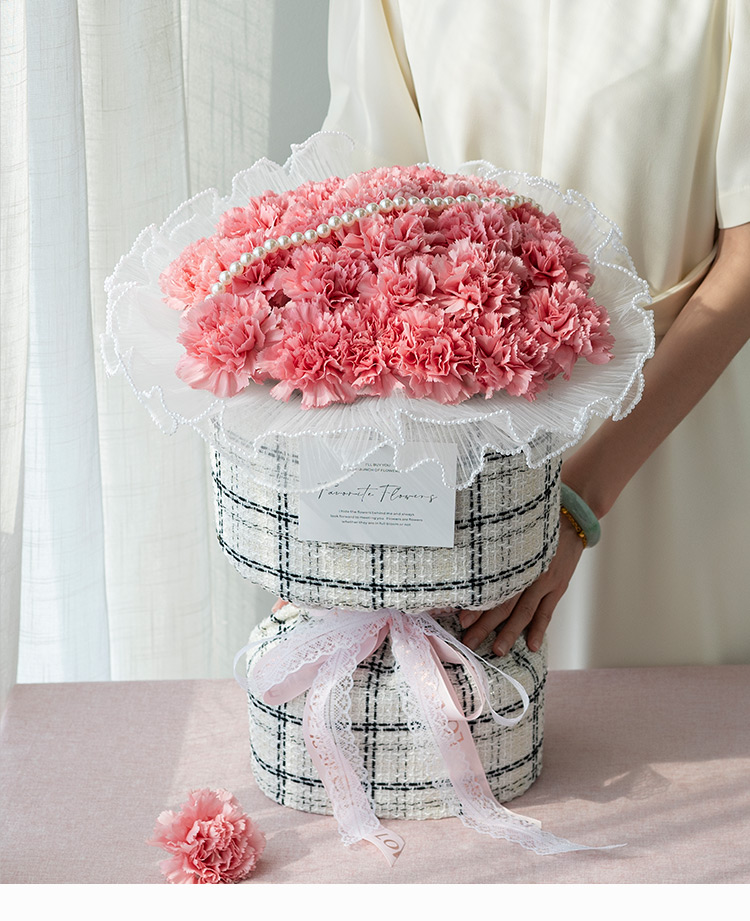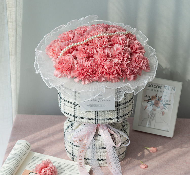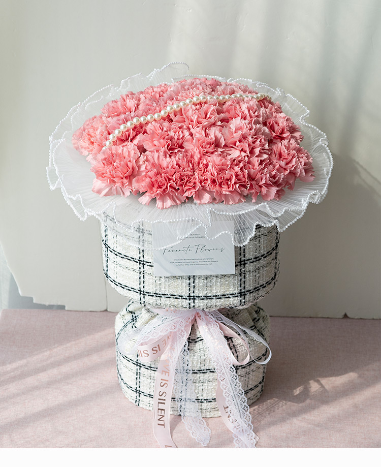 [黑白格子搭配粉色康乃馨] 粉色康乃馨26枝