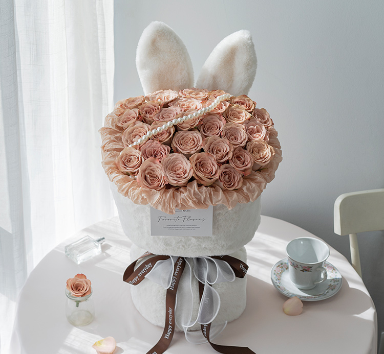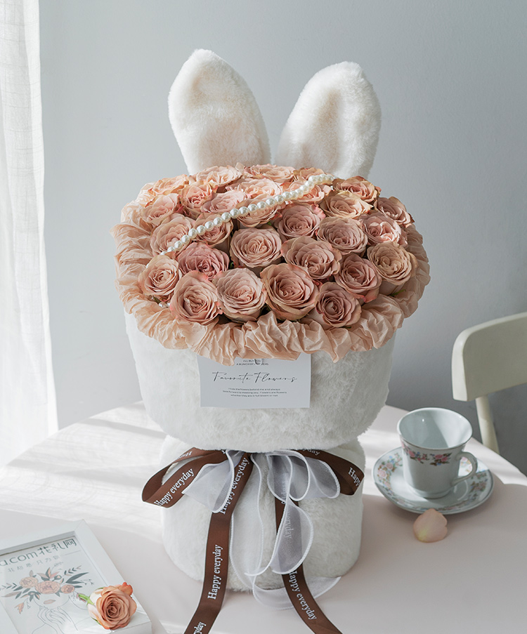 首页 > 鲜花 > “兔”然心动/卡布奇诺玫瑰