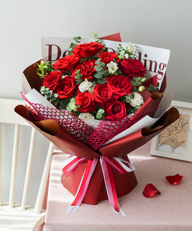 [热卖新品] 红玫瑰11枝,白桔梗3枝