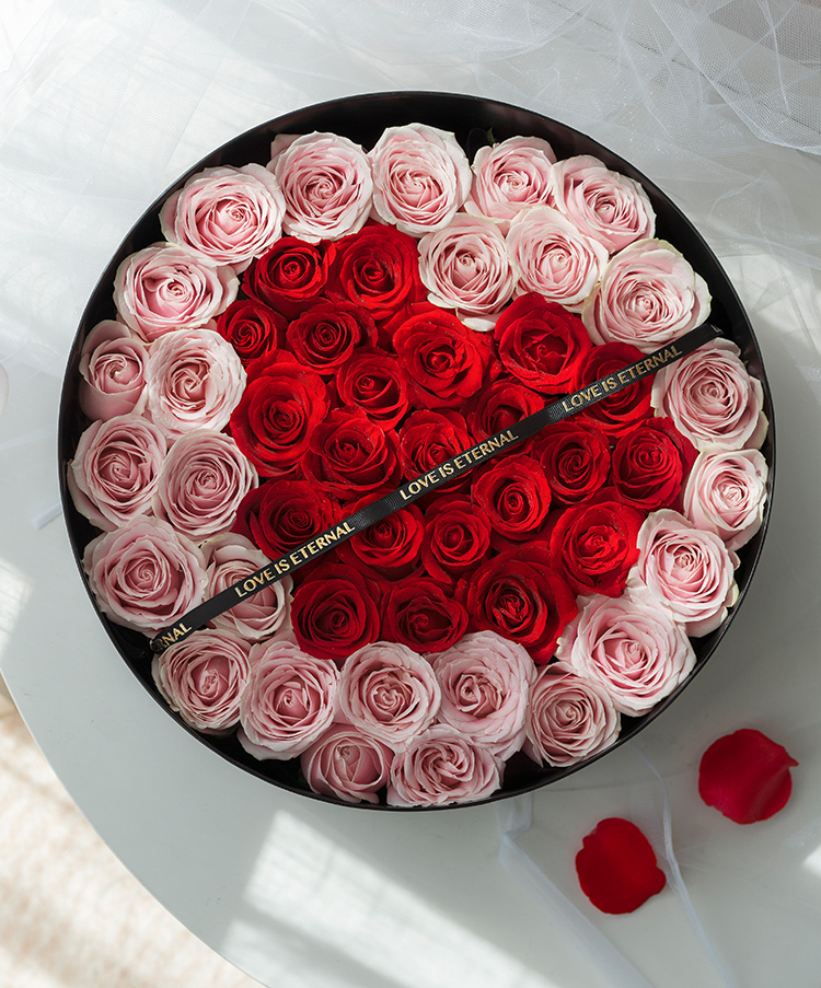 [精选花材设计爱心告白礼盒] 红玫瑰22枝,粉玫瑰26枝-29枝