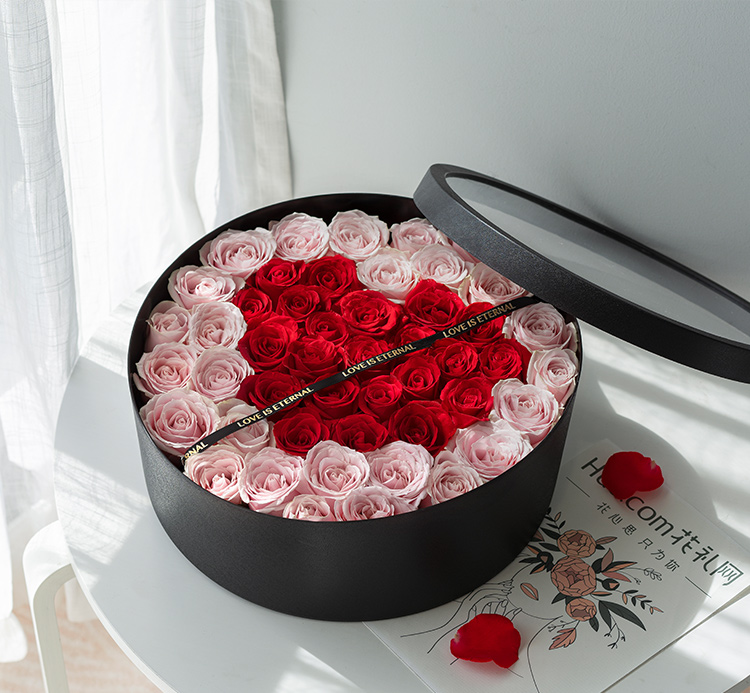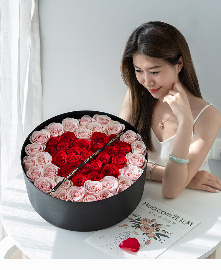 粉玫瑰26枝-29枝(玫瑰因为自然属性,大小稍有差异,以插满盒为准)