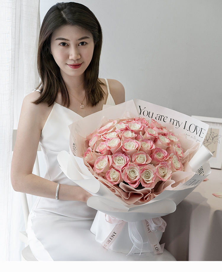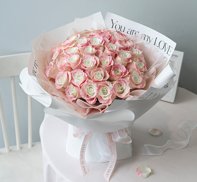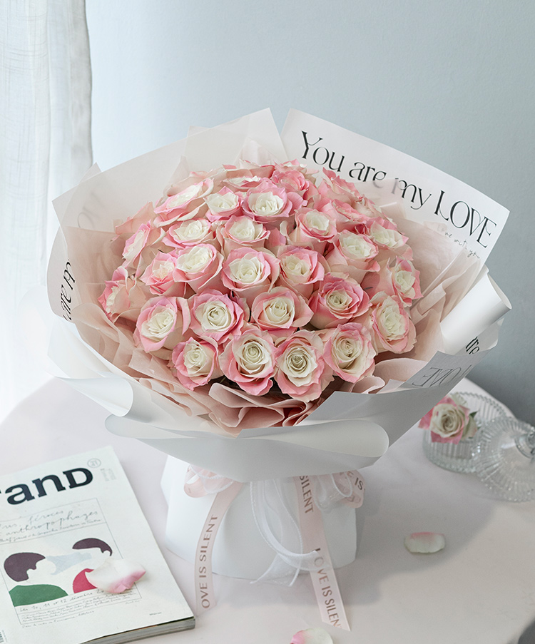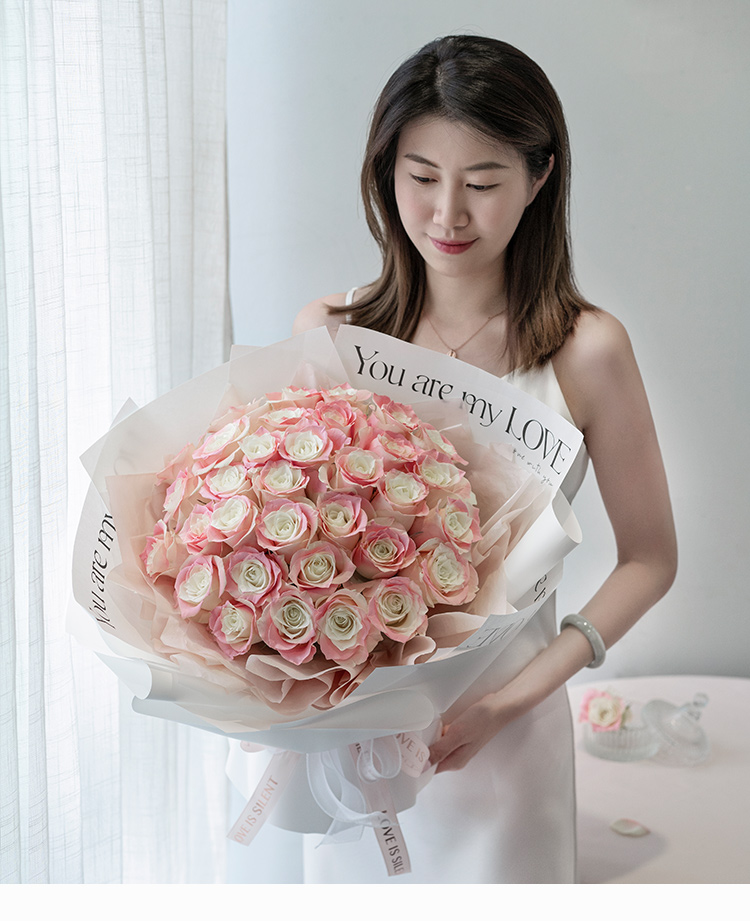 火烈鸟粉玫瑰33枝(骄傲白玫瑰使用巴哈马火烈鸟粉喷色工艺处理)