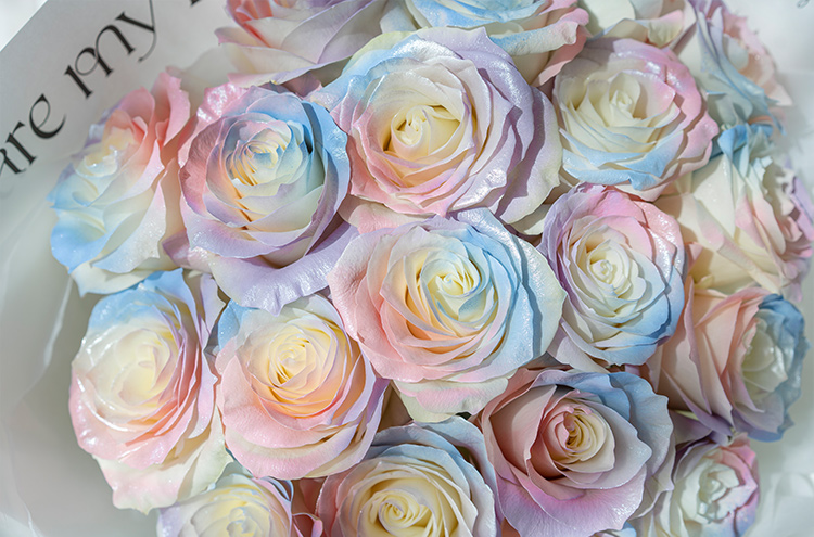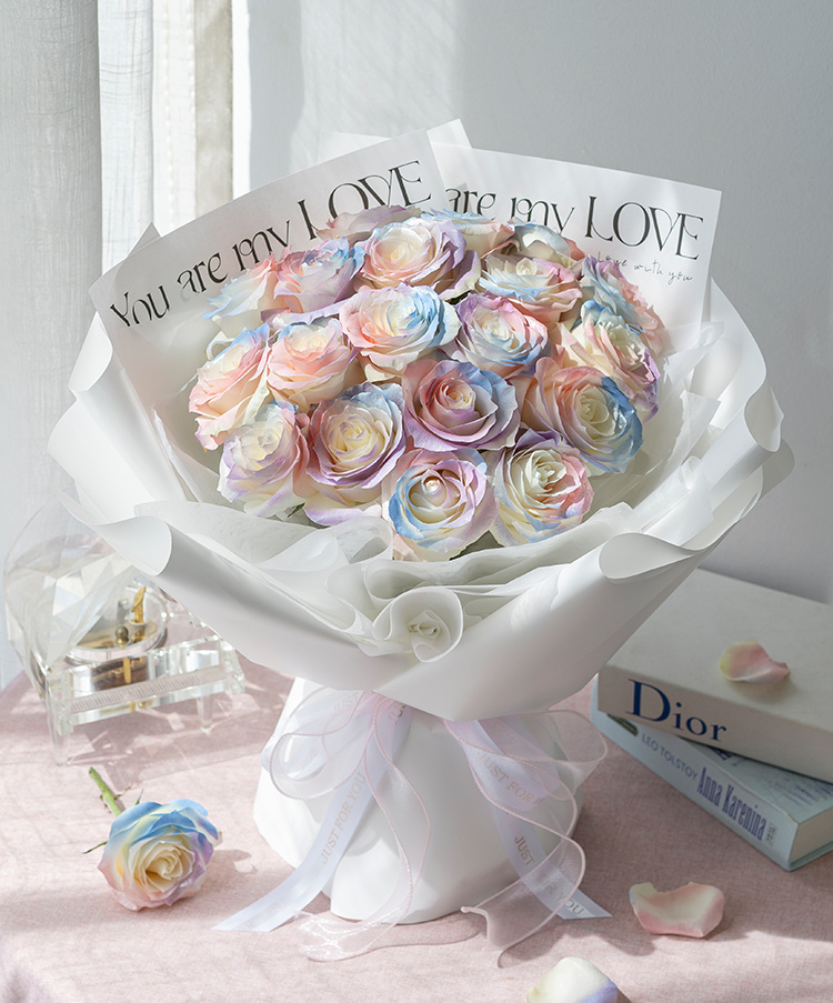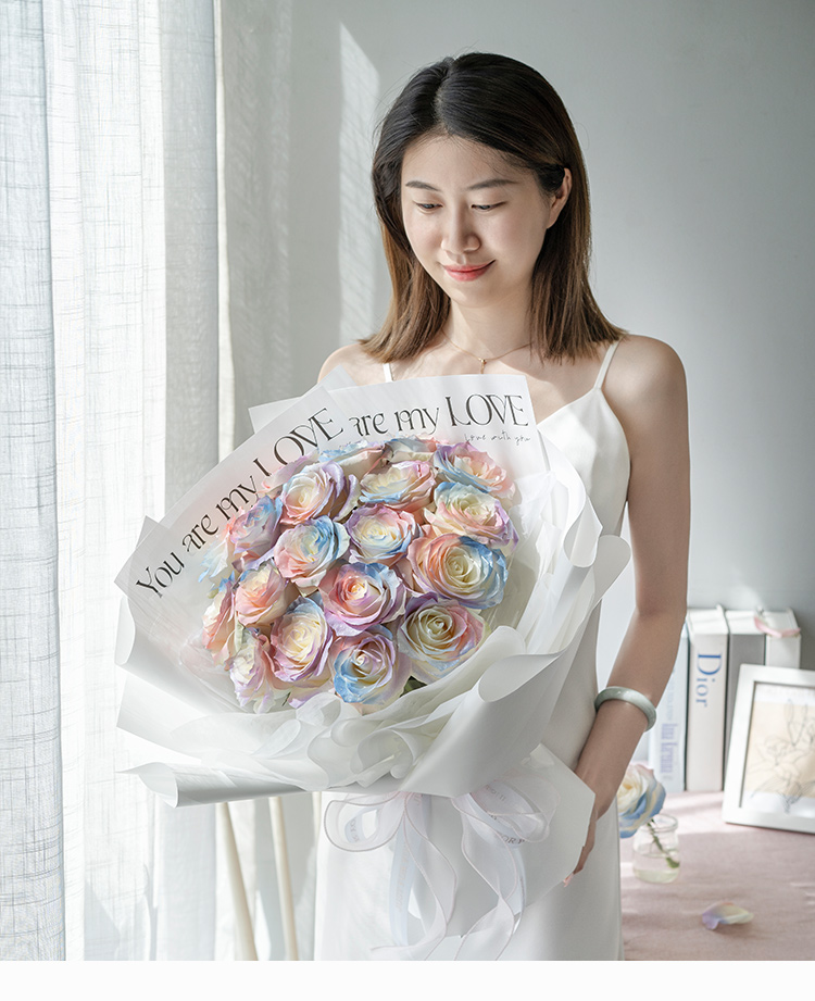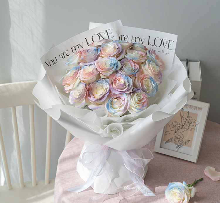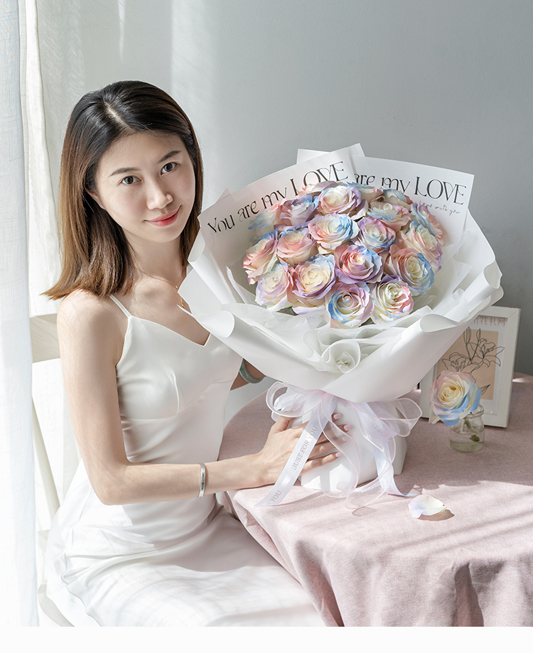 欧若拉玫瑰19枝(骄傲白玫瑰使用喷色工艺处理)