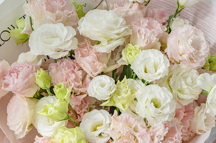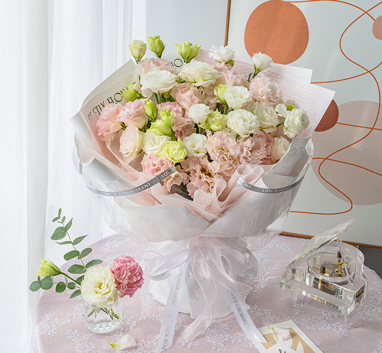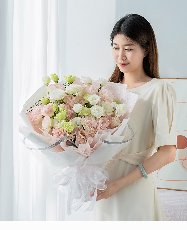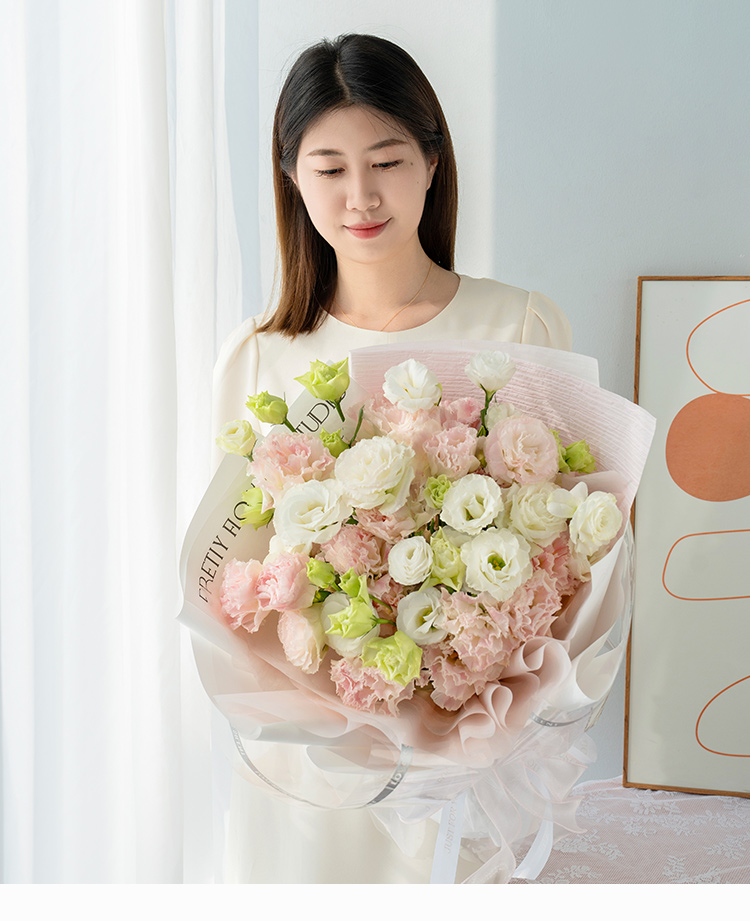 阳光粉波浪桔梗8枝多头(3头以上)、白色洋桔梗4枝多头