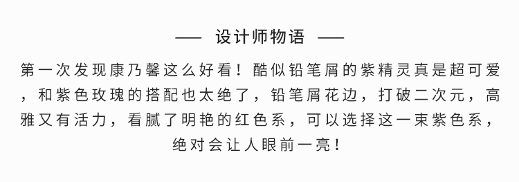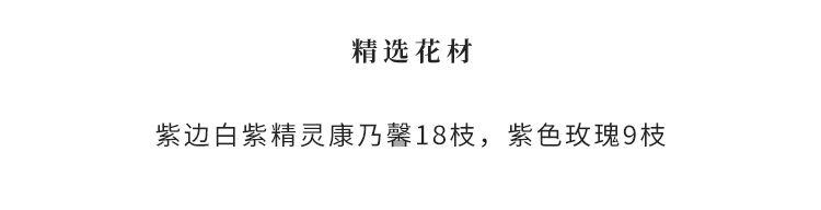 紫边白紫精灵康乃馨18枝,紫色玫瑰9枝