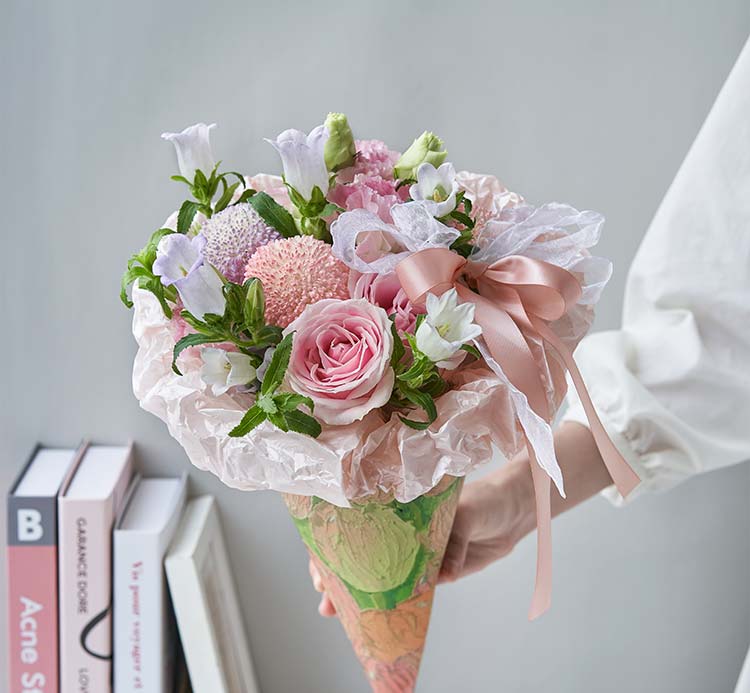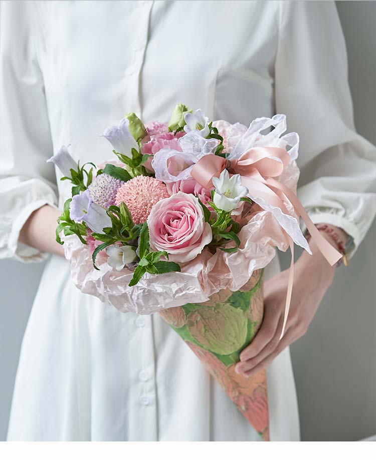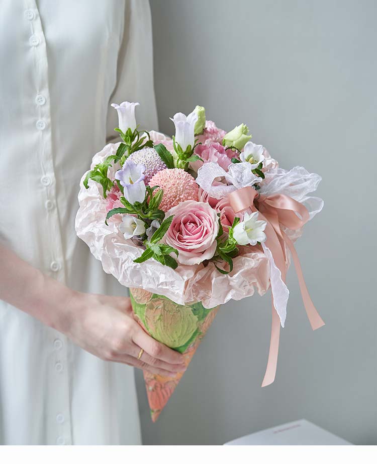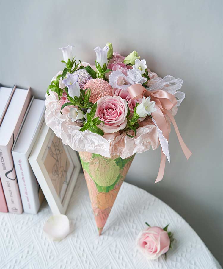 [梦幻可爱冰淇淋造型花束] 乒乓球3枝,粉玫瑰4枝