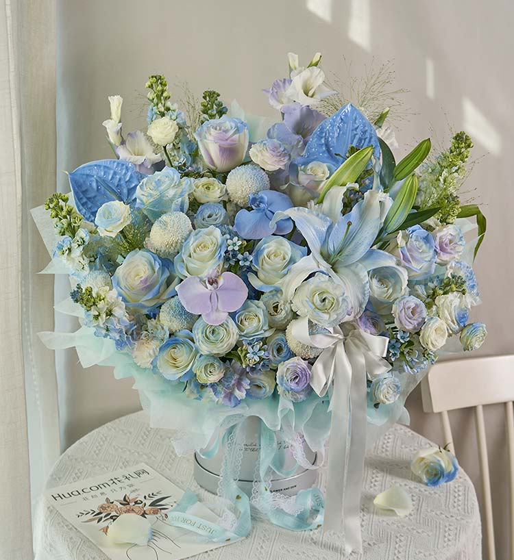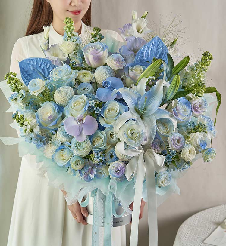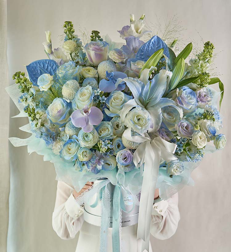 冰蓝幻境/高端鲜花抱抱桶