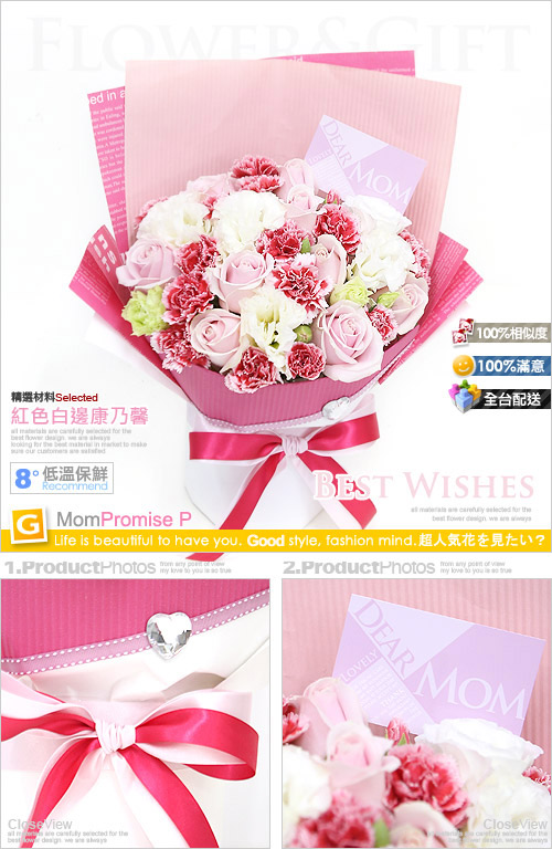 粉色系、康乃馨,花店金字招牌花束,喜气又美丽。给妈妈最热情的母亲节欢呼!