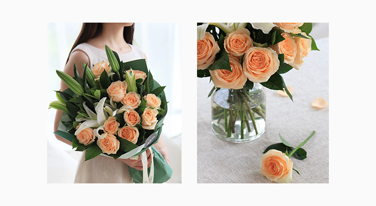 [一见倾心,心向往之] 11枝香槟玫瑰,白色多头百合2枝