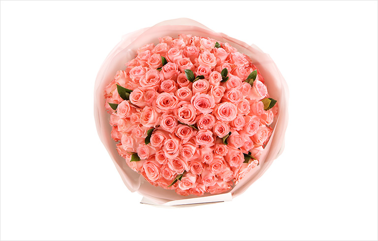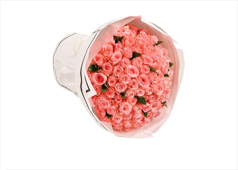 [笑意满怀,美若天仙] 戴安娜粉玫瑰99枝,栀子叶适量