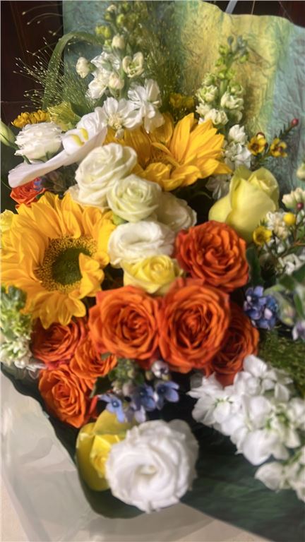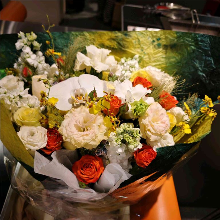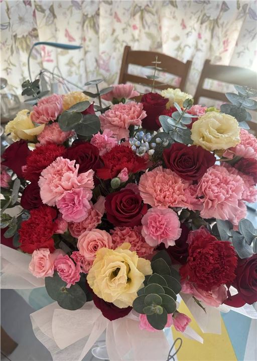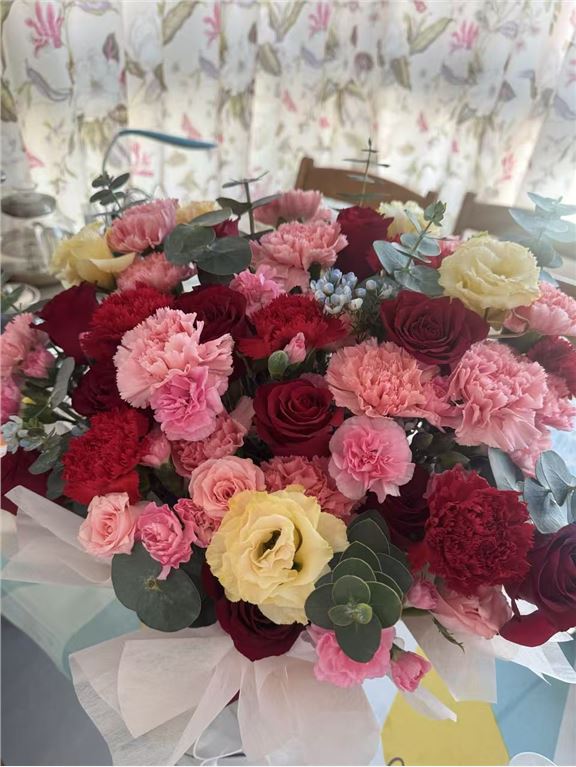 寒冷的冬日,一捧鲜花让人眼前一亮,带给人温暖和美好。鲜花很漂亮,和网上的图片一样,物流送货也很及时。总之,是一次很开心的订购体验。