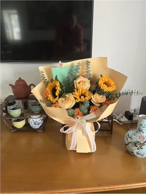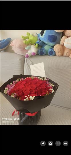 买同款鲜花色泽艳丽,搭配的很温馨。