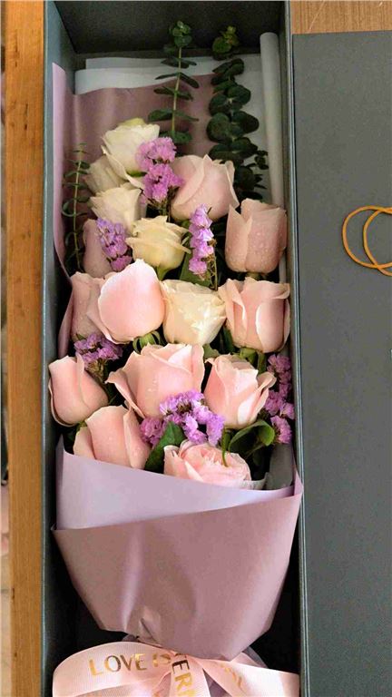 准时送达 ,花很漂亮,礼品盒包扎的非常细致