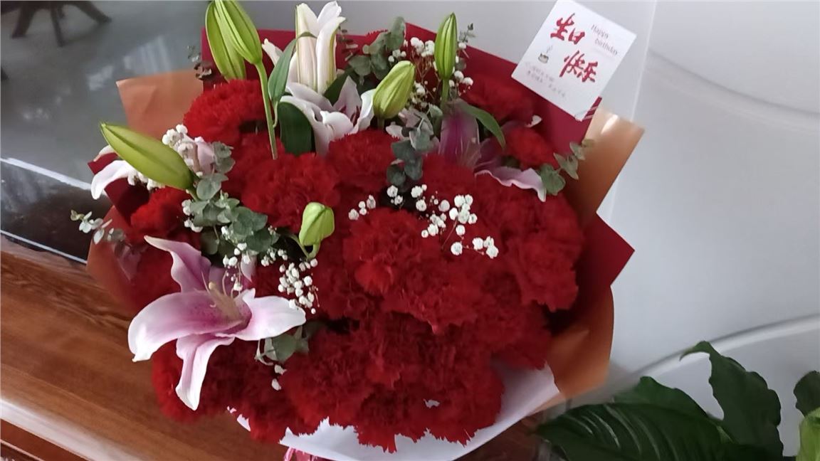 鲜花超级漂亮,老人过生日特高兴