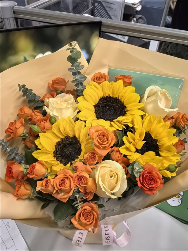 鲜花收到了,非常新鲜!包装很严实,一朵损坏的都没有。颜色和图片一样漂亮,卖家还贴心地送了保鲜剂和写祝福卡片。下次买花还来这家,祝生意兴隆!