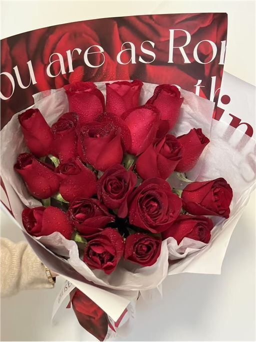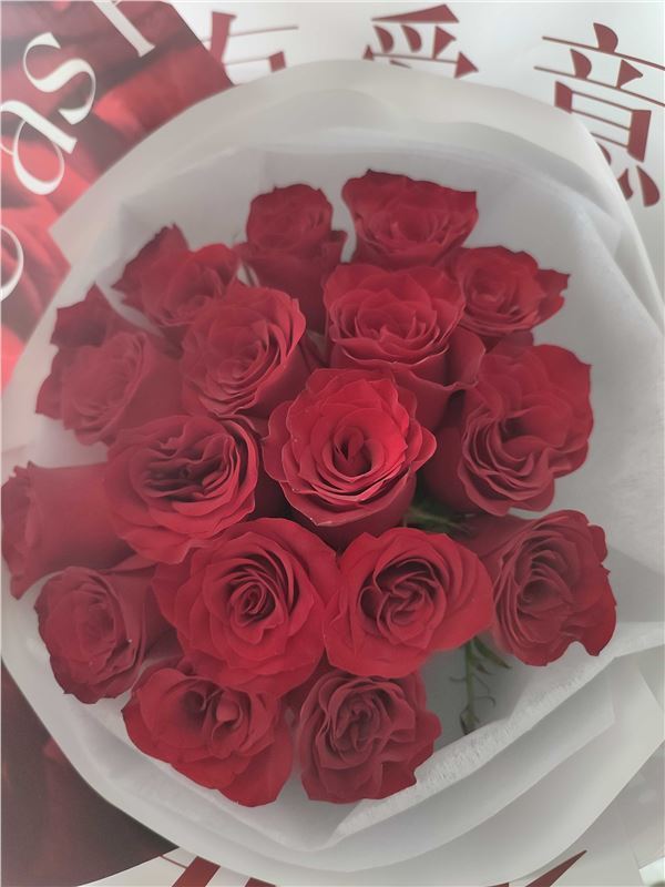 冬日里鲜艳的红玫瑰温暖着人心,花朵呈半开状,放入花瓶中可以保持一个多星期。又是一次美好的订购。