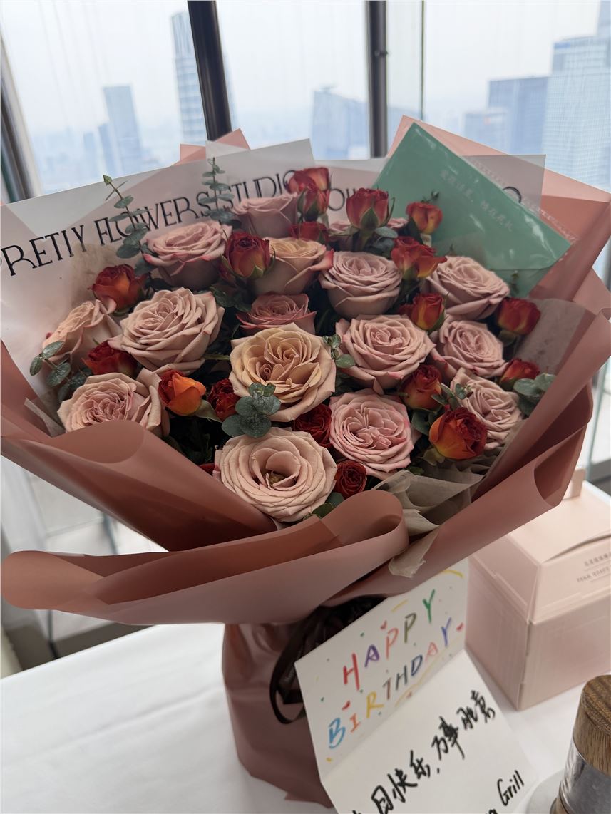 真是一分钱一分货呀!卡布奇诺玫瑰的颜色太美了!低饱和度,高级感十足!闺蜜过生日很喜欢,我也超满意!