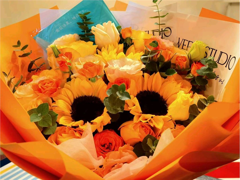 好友的生日,因为她特别喜欢橙色,所以定了一捧金色暖阳的鲜花,甚是喜欢💕
