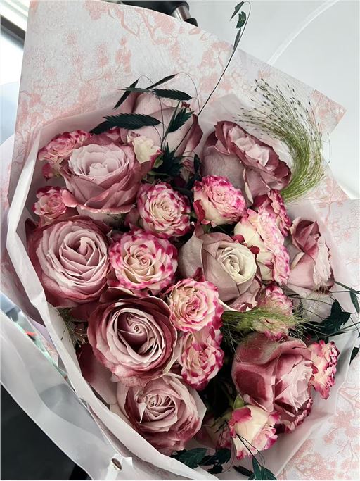 花束做得非常好看,很香,递送也是很迅速,非常满意。