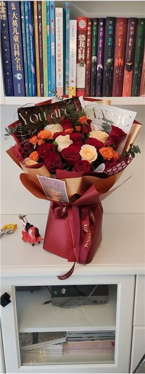 今年的鲜花 真是令人非常的满意 比往年的质量都好 朵数大 颜色鲜亮 花儿新鲜 妈妈非常满意 高兴和喜欢! 大赞了!你们的质量越做越好了 希望你们再接再厉 !我回头再来找你们定制!