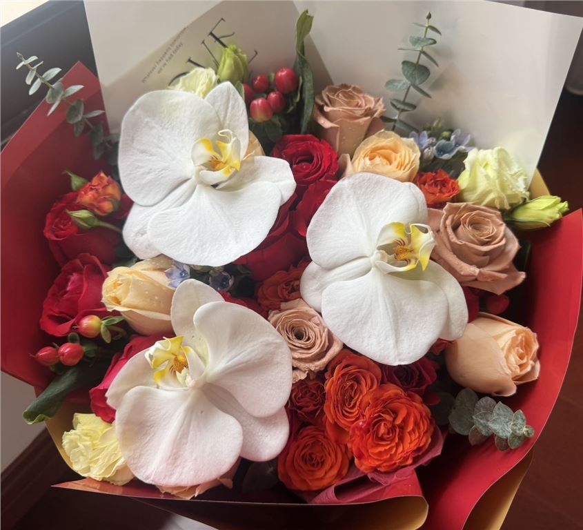 送给朋友的花收到了,真的很漂亮,中间有一点点小插曲,但是服务人员态度真好,给个大大的👍🏻,也祝店家生意兴隆!
