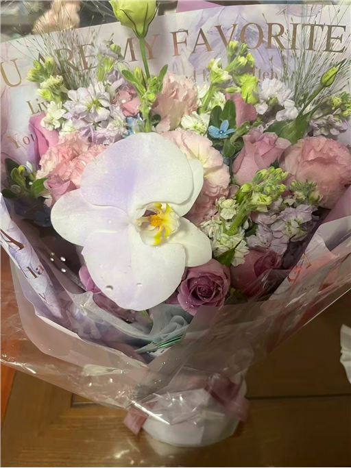 非常漂亮的一束花,包装精致,价钱合适,花也很新鲜,没有瑕疵,好评,值得回购。
