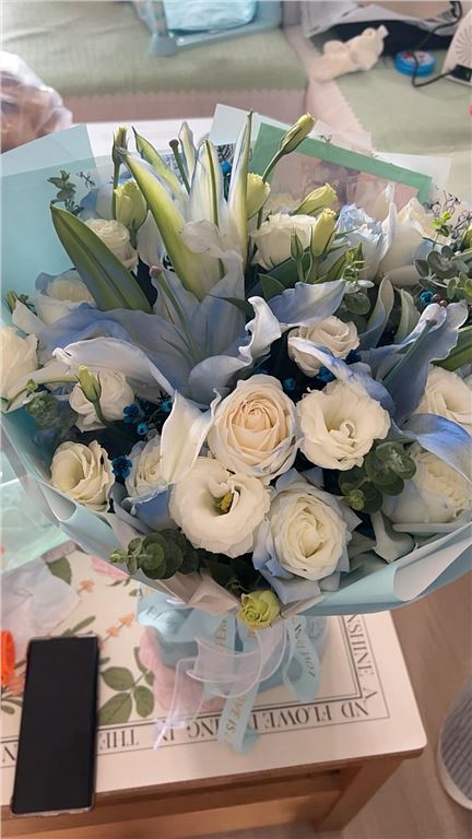 鲜花收到,宝贝很喜欢,和图片上显示的一样,花材新鲜,色泽鲜艳,搭配合理漂亮