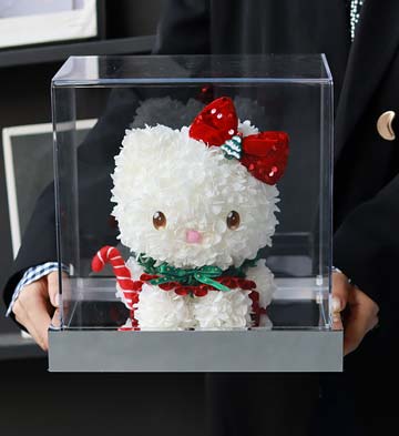 苔藓小熊1个,厄瓜多尔进口永生白色玫瑰2枝