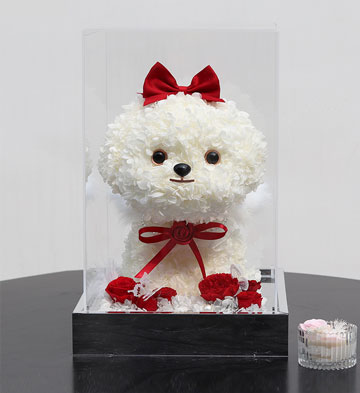厄瓜多尔进口红色永生玫瑰2枝,进口白色永生玫瑰1枝,棉花2朵,粉色珍珠5颗